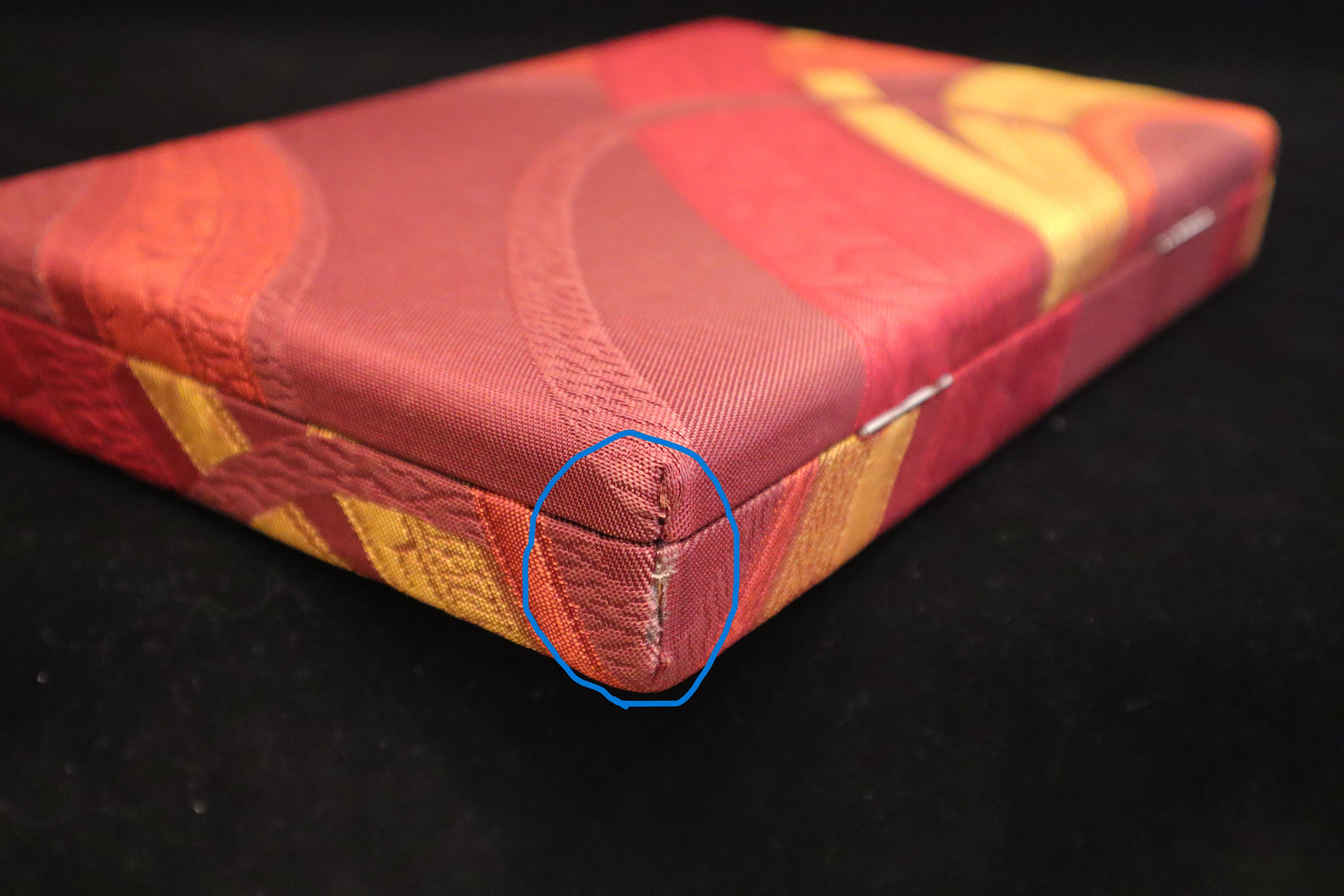 なお、生地が厚いために箱の四隅の接着が目立つことからお求めやすい価格でご案内しております。何卒ご了承のうえ、お買い求めくださいますようお願い申し上げます。